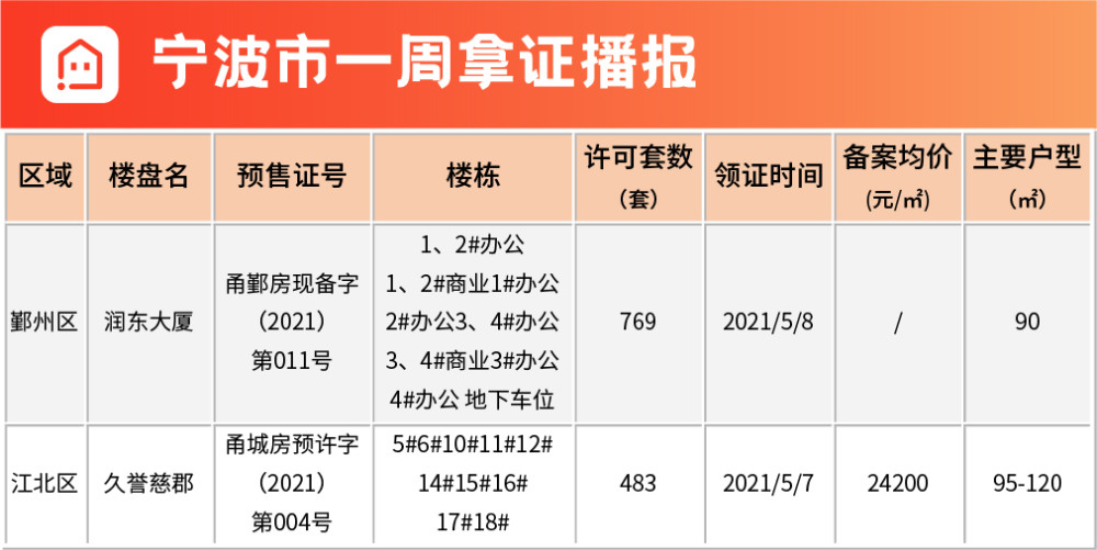 上周寧波共2個(gè)樓盤取得預(yù)售證,入市房源共計(jì)1252套。